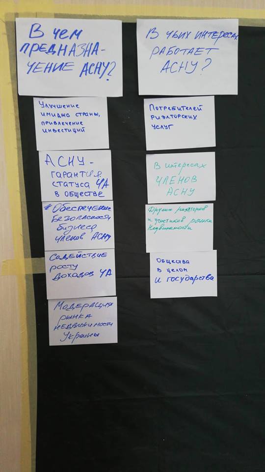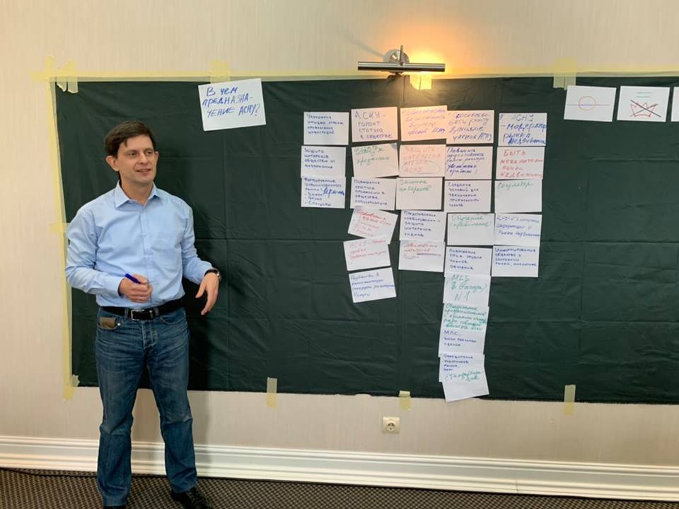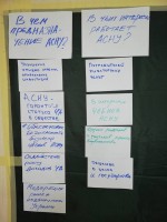 По сценарию классических бизнес-тренингов работа проходила в группах. В каждой из них обсуждались мнения и видение участников, вырабатывались общие ответы. Их заносили на специальные карточки, после чего с помощью фасилитатора, роль которого на сессии выполнял Андрей Правдин, обсуждалось и вырабатывалось единое мнение по каждому из вопросов.