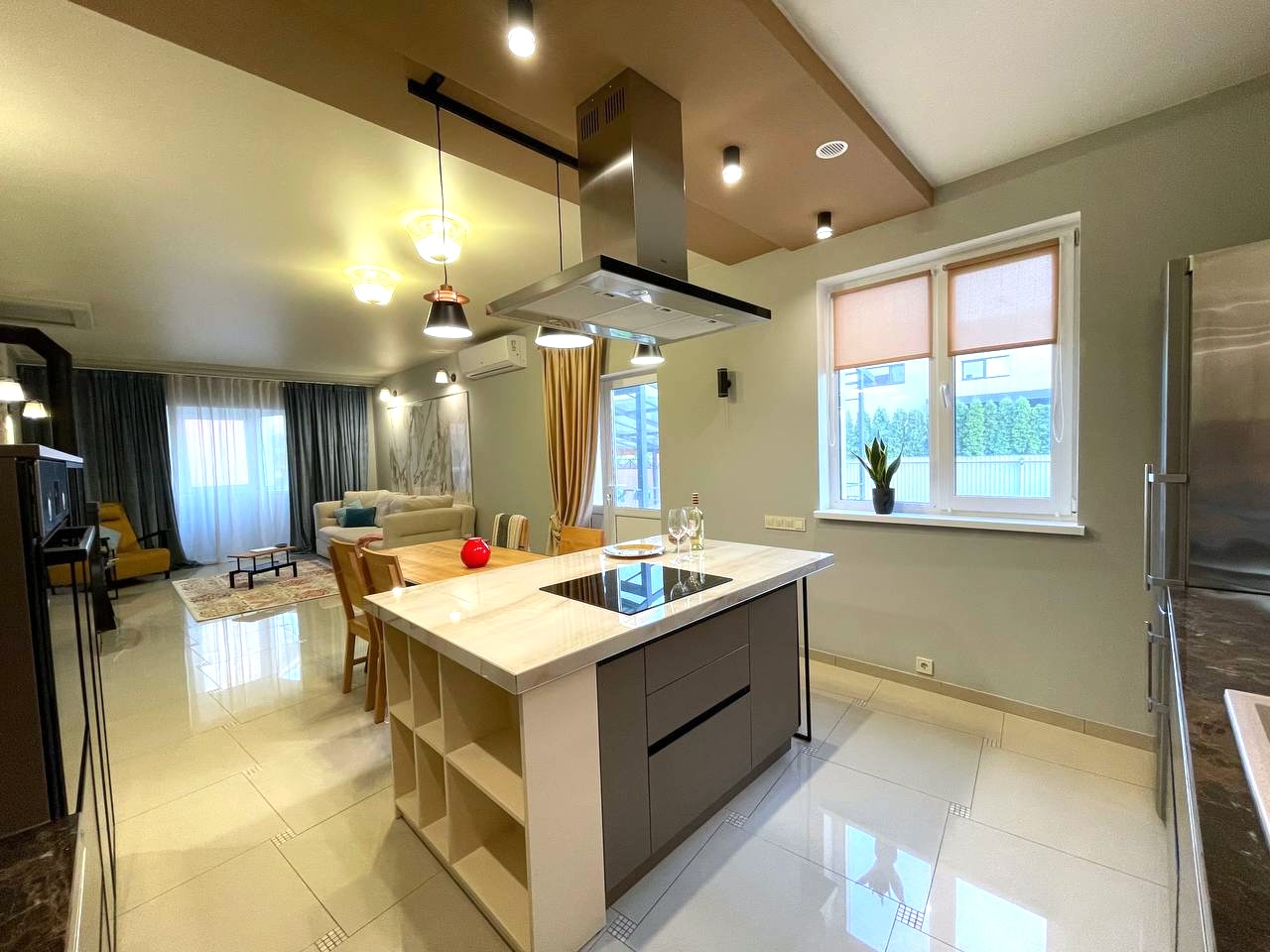 Площа – 240м (220м будинок + 20м тераса), дизайнерський ремонт.