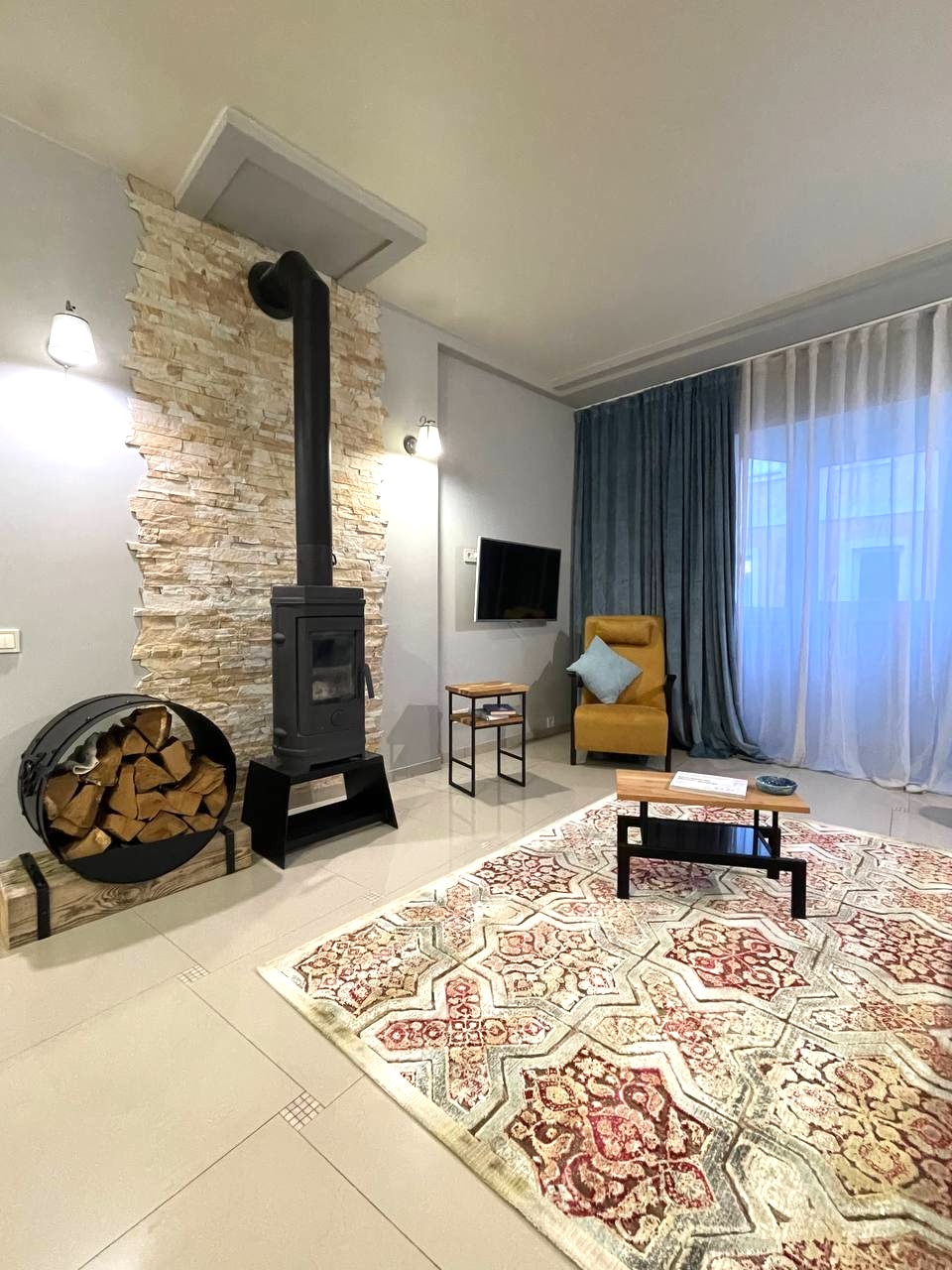 опалення - електричний котел, підігрів підлог на всіх поверхах включно з підвалом, дров’яна чавунна піч-камін у вітальні;