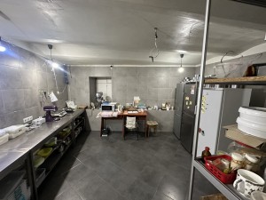 Є підвал, де облаштована кухня і при потребі можливо зробити посадкові місця.