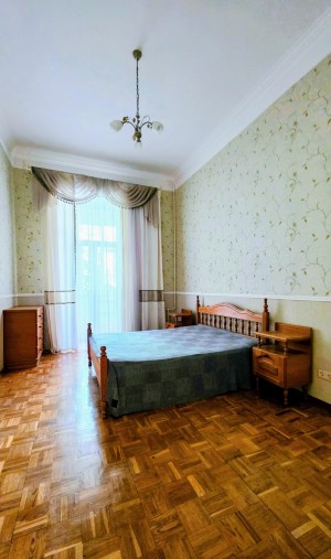 Саксаганского,41В. дом 1917 года (реконструкция дома 1967г., перекрытия ж/б) находится в тихом зеленом дворе, чистое аккуратное просторное парадное, лифта нет, въезд через шлагбаум, детская площадка. Квартира 2/4 эт. 75 м2 в хорошем жилом состоянии: Стеклопакеты, паркет, большой с/у, Светлая просторная Кухня-гостиная, 2 спальни, гардероб. Н-3,70 м.