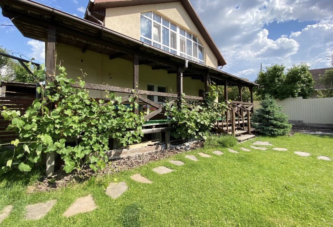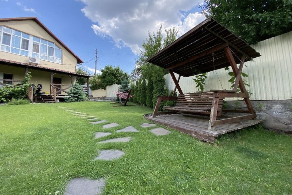 На доглянутій території — ландшафтний дизайн, альтанка з мангалом, зона барбекю та відпочинку, де панує затишок і гармонія.