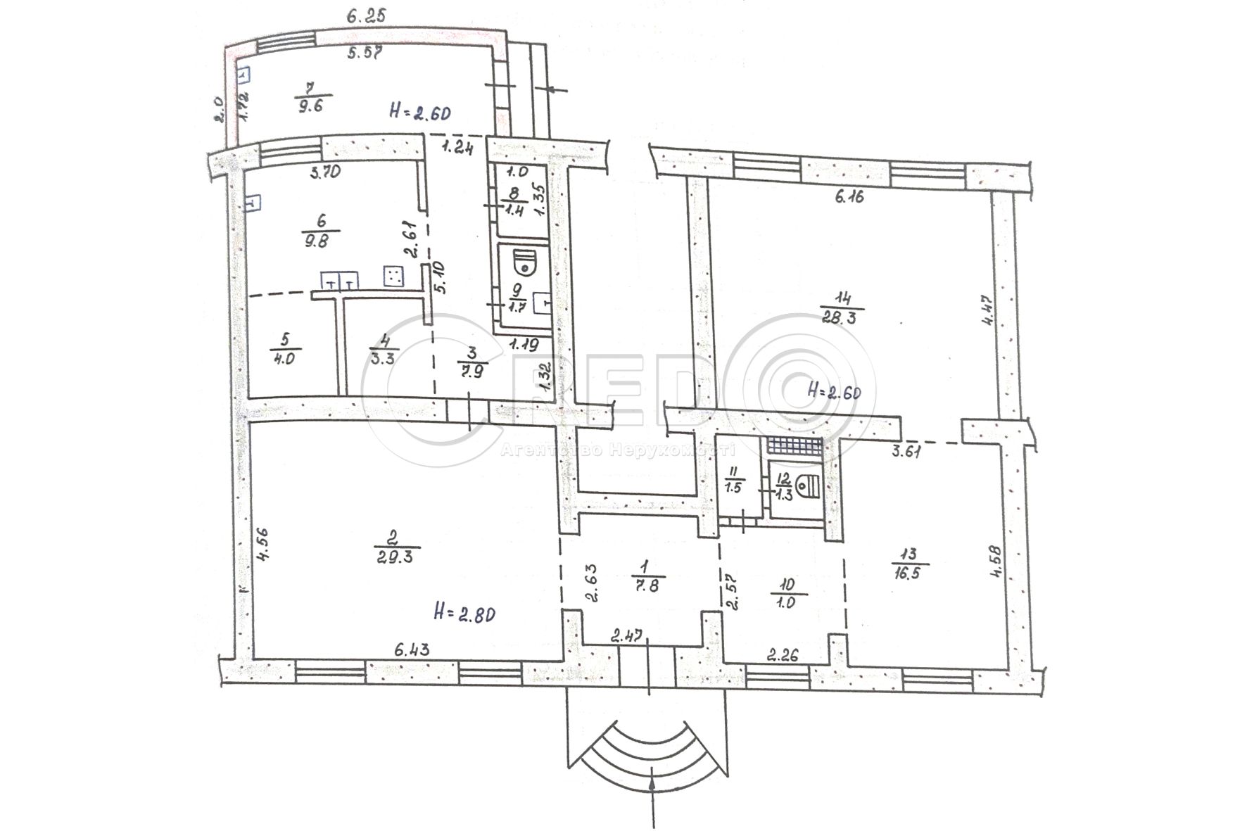 - Висота стелі – 2.80м.