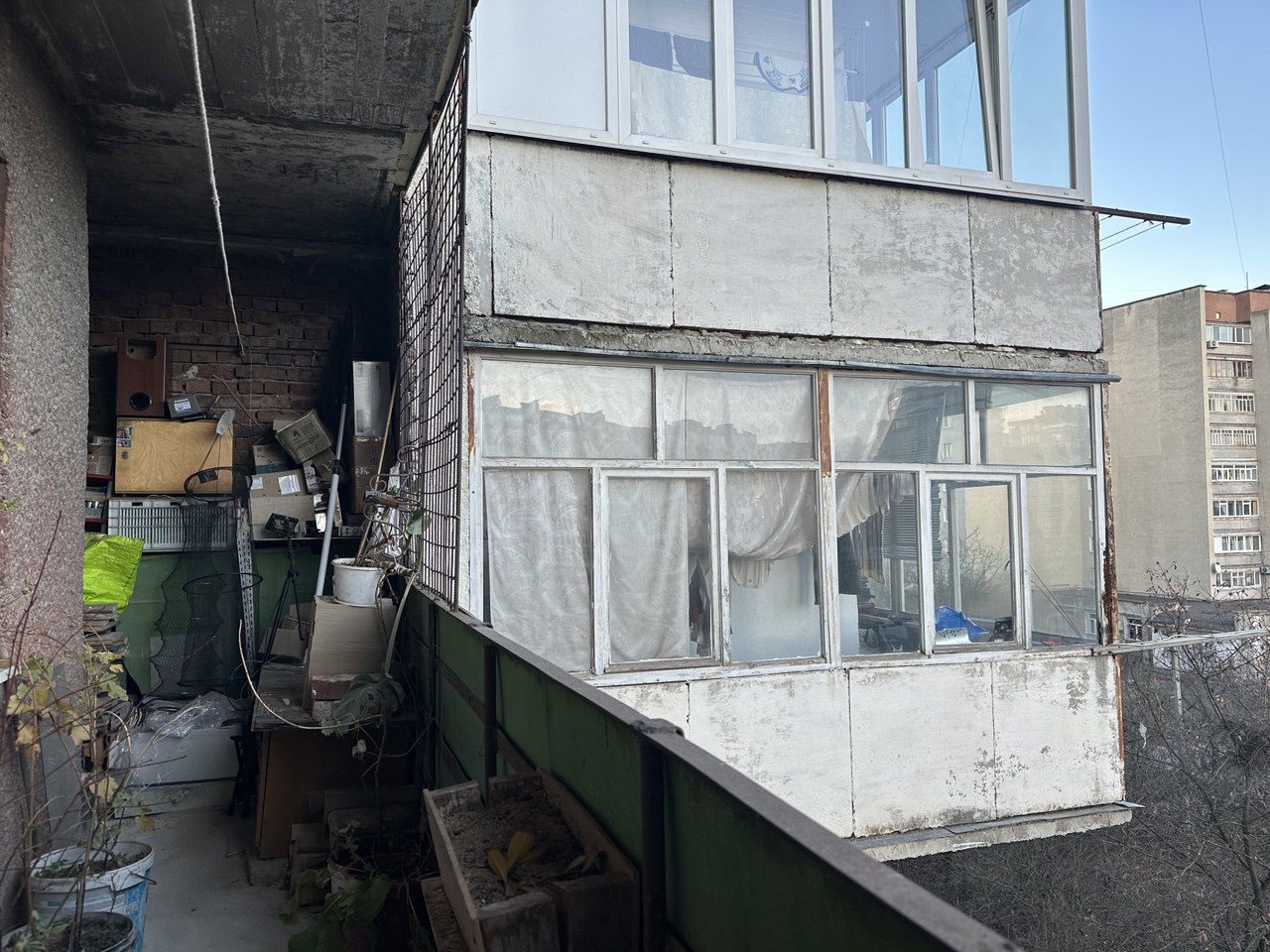 4-й поверх цегляного 9-поверхового будинку. Східна сторона, гарний вид на церкву та стадіон.