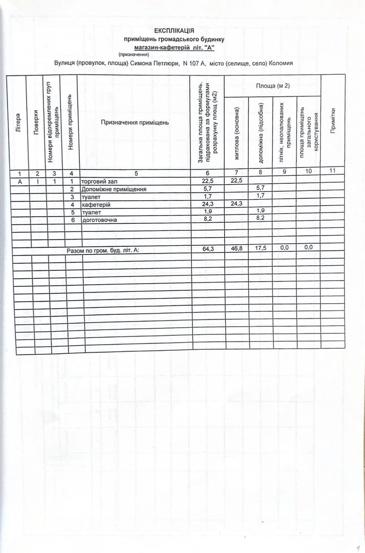 - торговий зал, площею - 22,5 кв.м., підсобне приміщення, санвузол.
