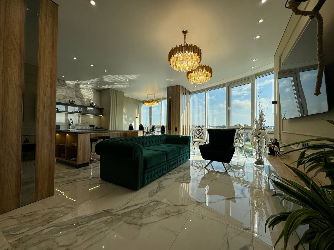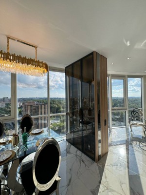 Квартира площею 107/56.7/23.7 м.кв розташована на 10/14 поверсі з неймовірними краєвидами, що відкриваються з панорамних вікон. Ремонт виконаний з дорогих та якісних матеріалів у світлих, спокійних тонах. Є 3 кондиціонери. Тепла підлога по всій квартирі. Квартира на електриці. У квартирі продумано все до дрібниць, починаючи з санвузла, закінчуючи просторими гардеробними. Простора кухня-вітальня дозволить приймати багато гостей. Залишається абсолютно все: меблі, техніка. Заходь і живи. Ця розкіш чекає на тебе. Вартість 257000 у о +12 % оформлення