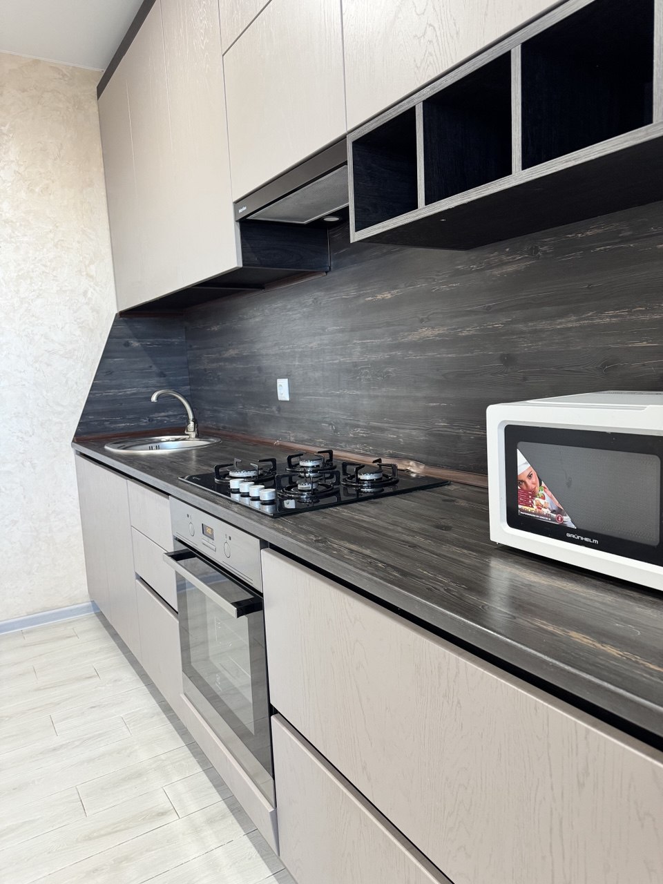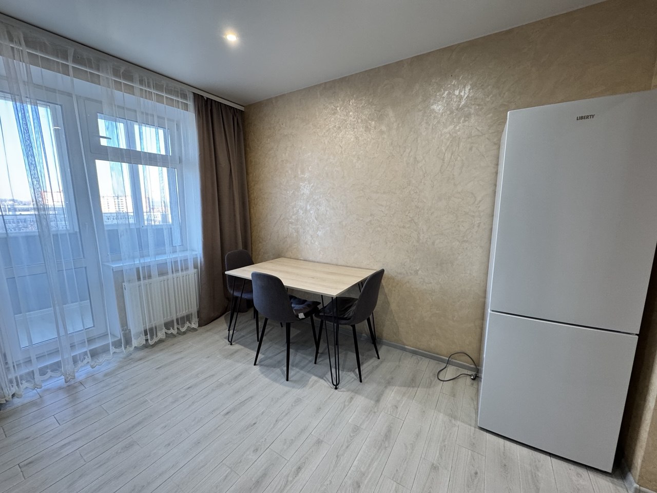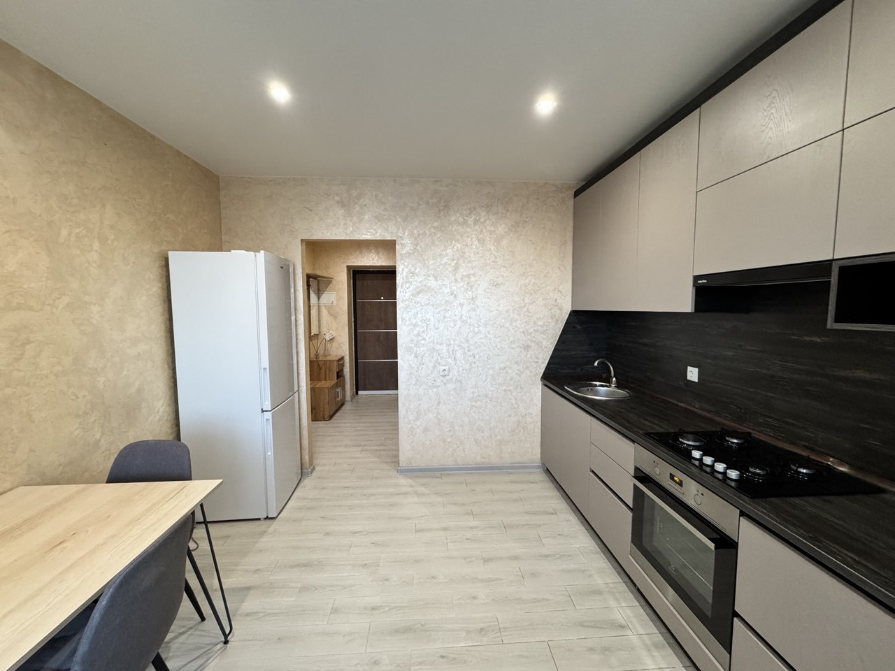Наповнена меблями та технікою.