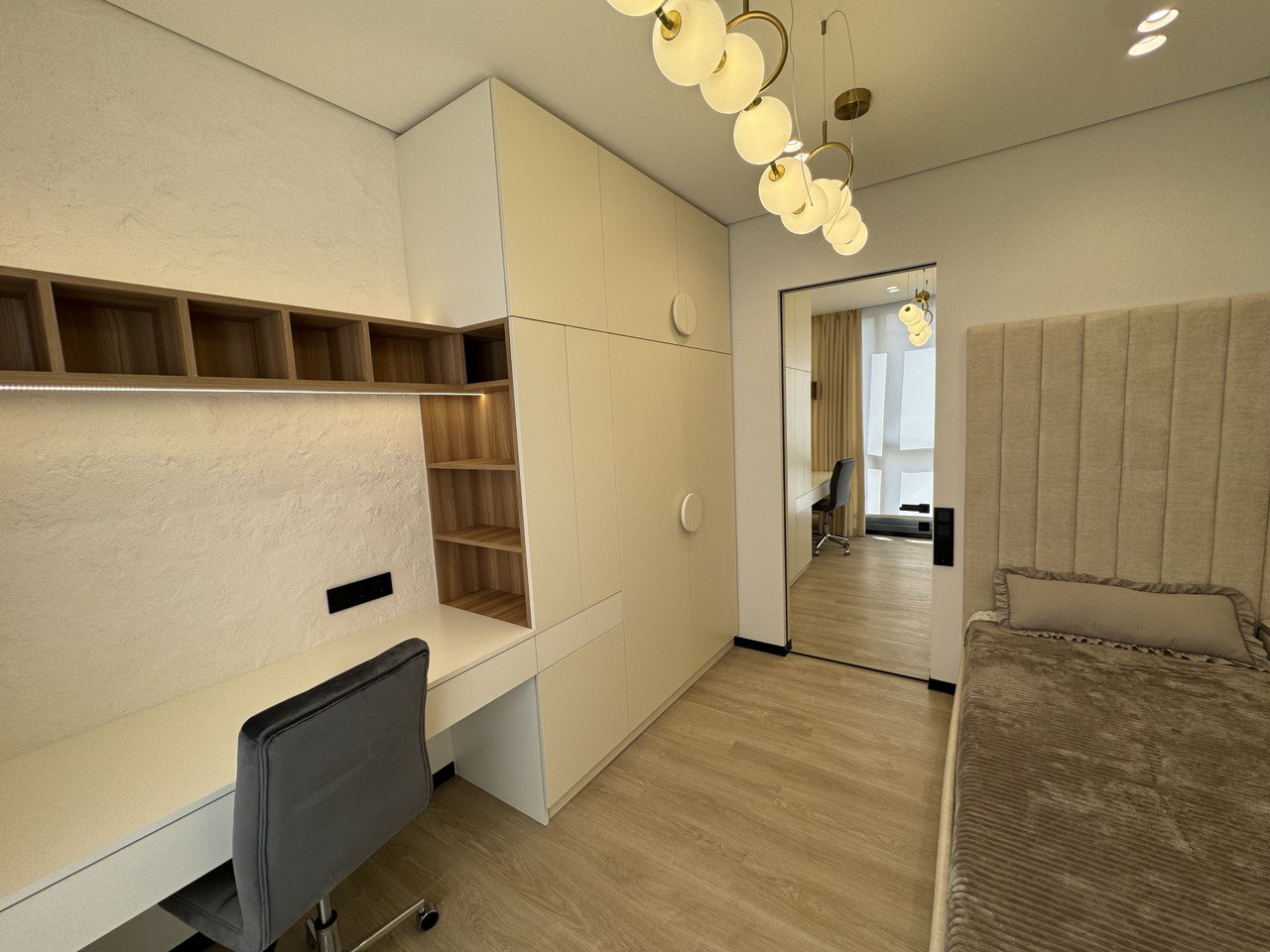 ОСНАЩЕННЯ КВАРТИРИ . всі корпусні та м’які меблі Frankoff . багато різних сценаріїв освітлення . декоративна штукатурка у всіх приміщеннях . ексклюзивна акцентна стіна під камінь, виконана вручну художниками та штукатурами . біокамін . вбудована побутова техніка . кондиціонер