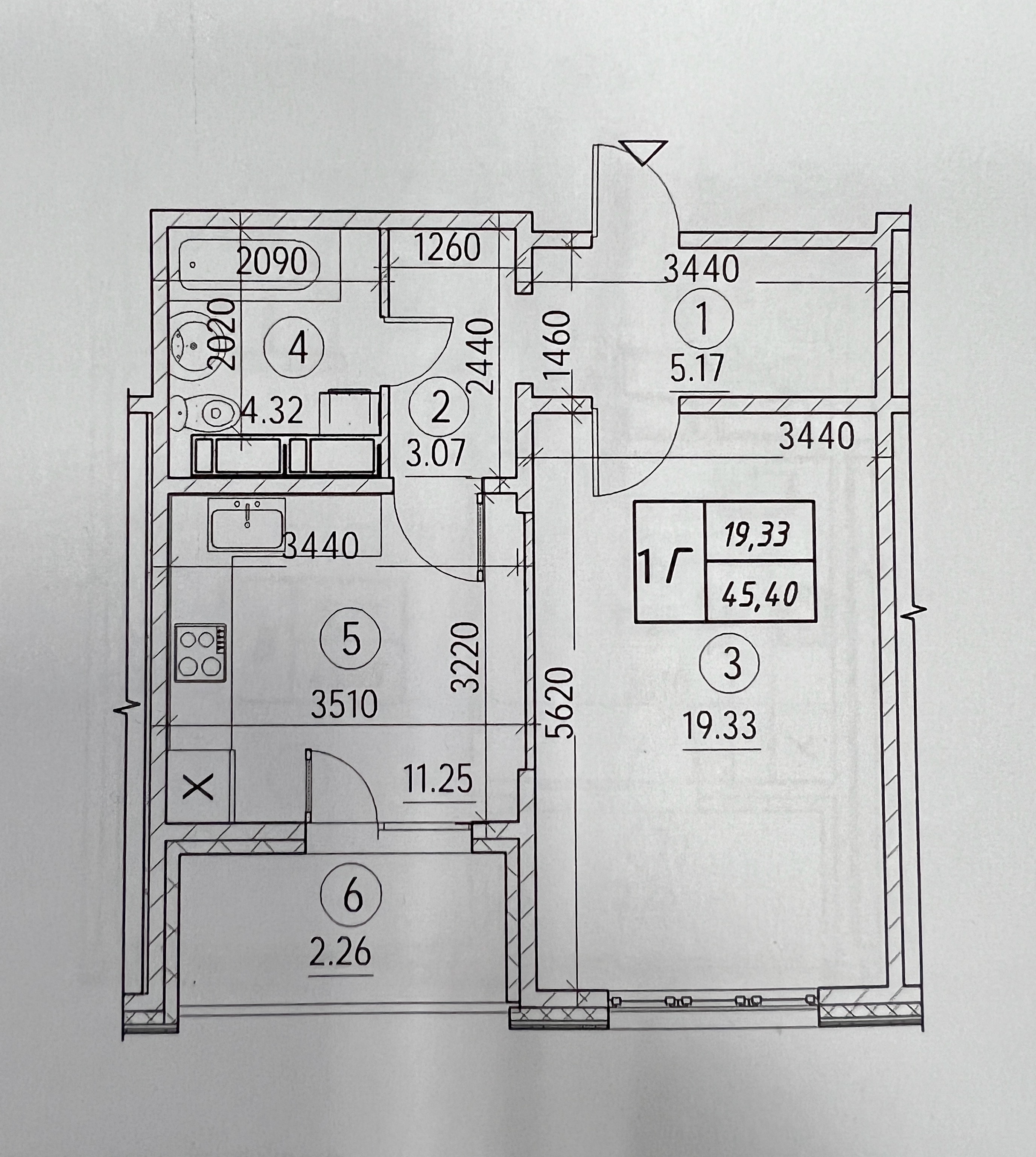Загальна площа: 45.4 кв.м