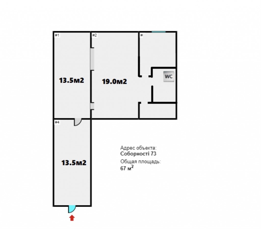 Загальна площа: 67 кв.м