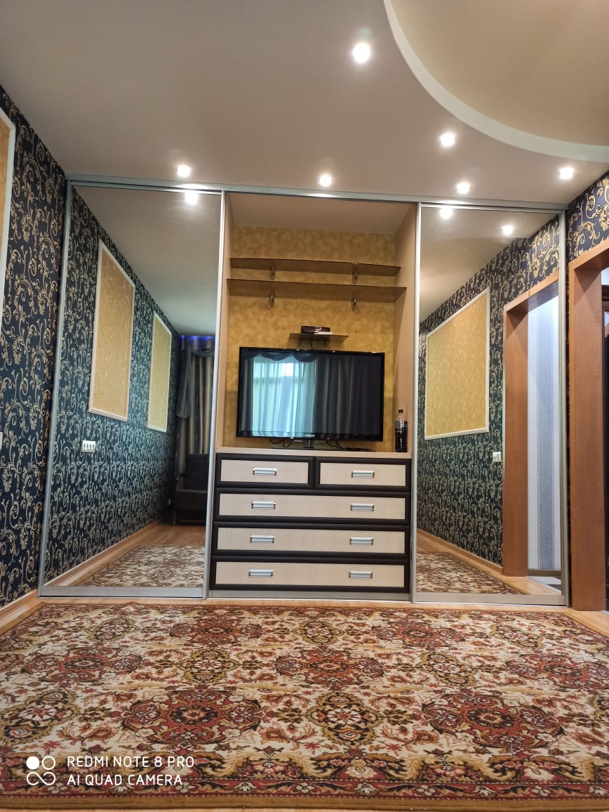 - два двуспальных дивана, детская кровать, полный комплект мебели в комнатах и на кухне