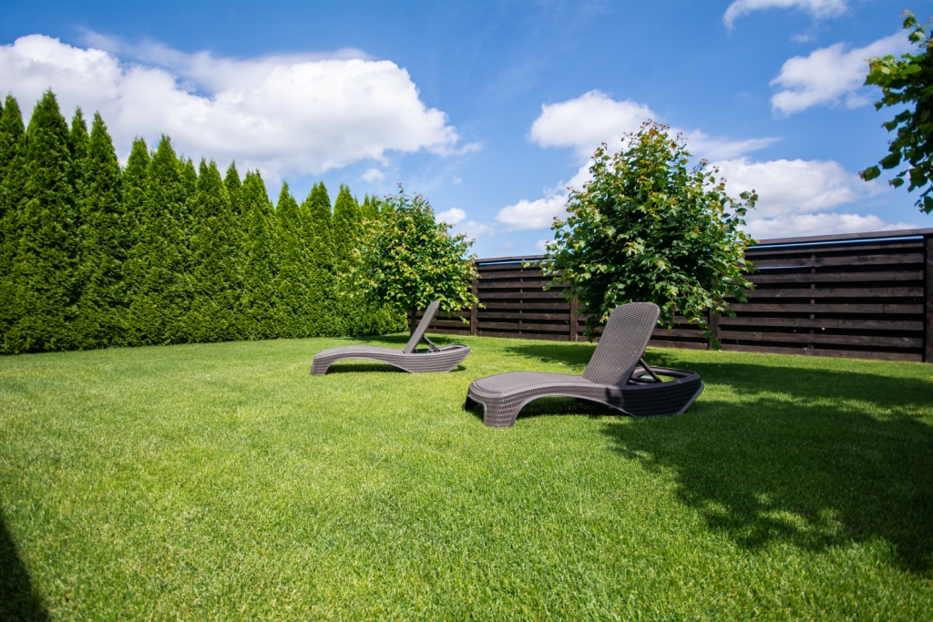 Зеленый участок 3 сотки с капельным авто-поливом, крытая парковка для автомобиля.