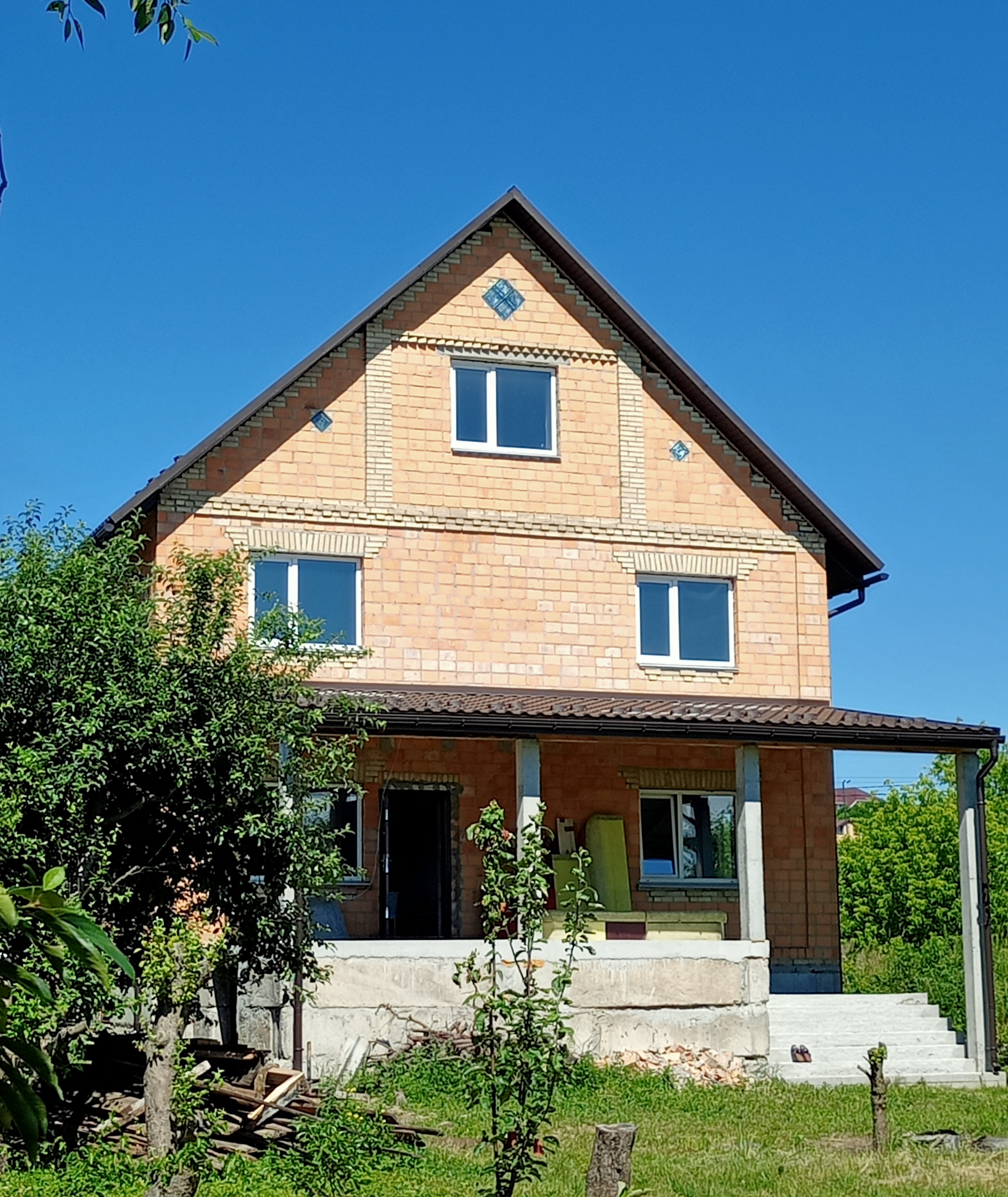 с.Гореничі Продам (можливо і в розстрочку) або обміняю на квартиру в Києві Будинок цегляний капітальний 2-поверховий 268 м2 з мансардою та цокольним поверхом. вул.Нова, 86 майже в центрі Гореничей. Всього 3 км від Житомирської траси в екологічно чистому передмісті, Житомирський напрямок, 12 км від м. «Житомирська». Центр села. (вулиця Нова паралельна Соборній – головній вулиці Гореничів) Києво-Святошинський р-н. У с. Гореничі добре розвинена інфраструктура та дуже зручне розташування щодо Києва. Можна заїжджати як з Житомирської траси, так і з Одеської гарною асфальтованою дорогою. Два супермаркети, багато приватних магазинів, ярмарки, школа, поліклініка, церква. Поруч три озера, хвойний ліс, річка Ірпінь. Від будинку до громадського транспорту лише 3 хвилини пішки. Асфальтований під'їзд до самого будинку. Вулиця Нова повністю забудована – Праворуч та ліворуч гідні сусіди. 20 соток землі - чудовий чорнозем. Будинок збудований з керамічної цегли. Перебудований нещодавно. Новий дах із металочерепиці, навіс над входом та над терасою у бік двору. Двокамерні склопакети. Перший поверх - фінішна штукатурка під чистове оздоблення. Великий зал - їдальня з виходом на терасу у бік двору. З/б перекриття. У будинку закладено теплу підлогу на 1-му поверсі, скрізь зроблено розведення труб для радіаторів опалення та санвузлів. Є великий підвал під усім будинком 86м2 та великий обладнаний мансардний поверх. 5 кімнат. 2 санвузли. Підключено електрику 3 фази 16 кВт, газ уздовж фасаду. Свердловина 45м. Це чудова нагода за відносно невеликі гроші придбати добротний котедж у хорошому місці та облаштувати його на свій смак!