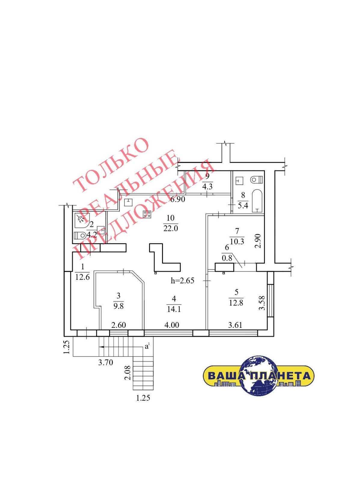 Предлагаем Вам квартиру 1-этаж. 2-3 комнаты 98 кв.м, квартира свободной планировки и имеет нестандартные большие окна, отдельный вход не с подъезда. Цена 65000 дол.США
