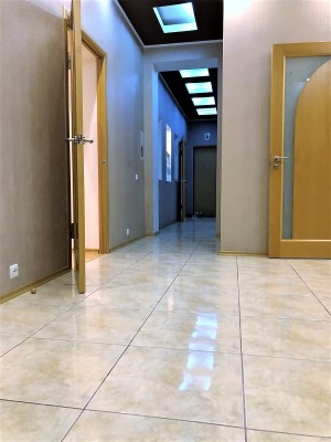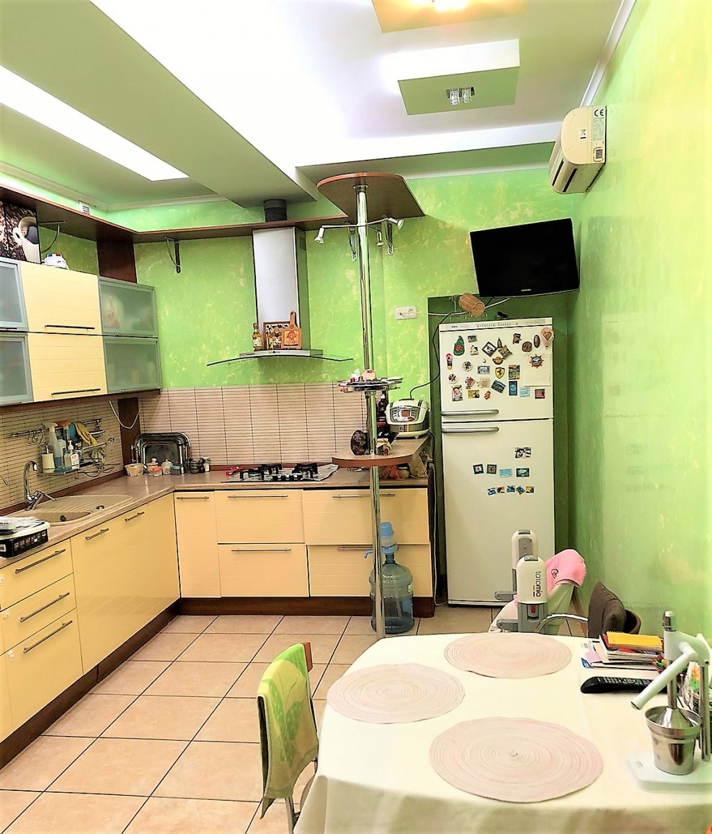Загальна площа - 150 кв.м: кухня-їдальня - 32 кв.м, три окремі кімнати, два санвузли, три балкони, просторий хол.