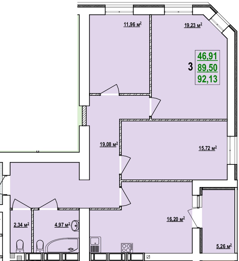 Загальна площа: 92.13 кв.м