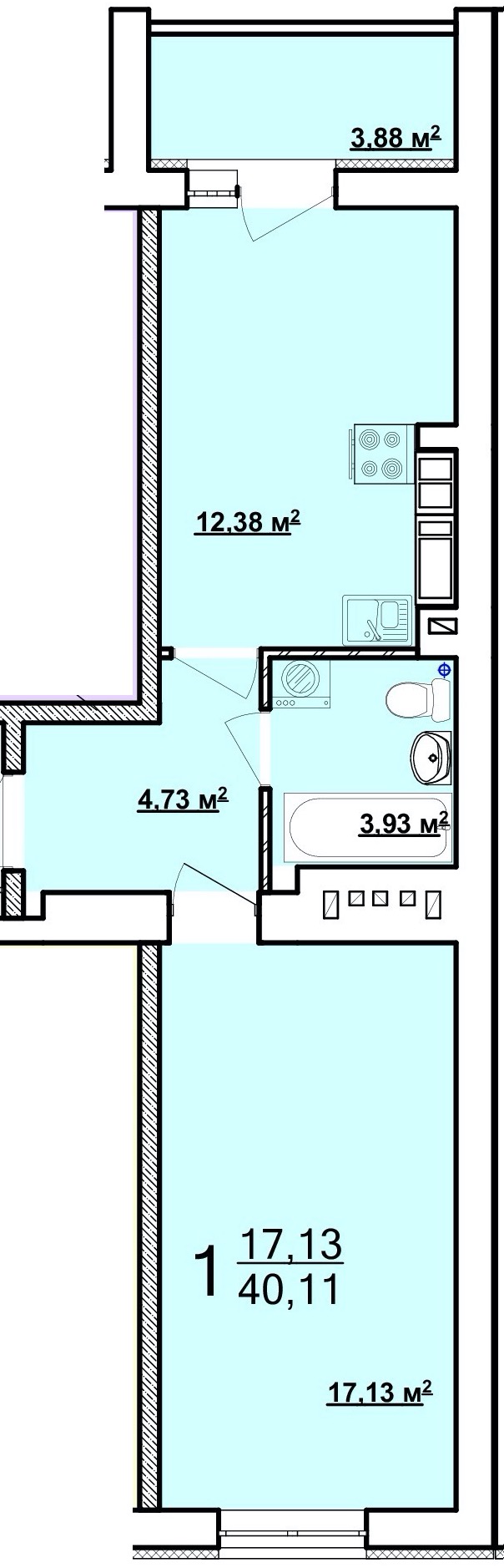 Жила площа: 17 кв.м