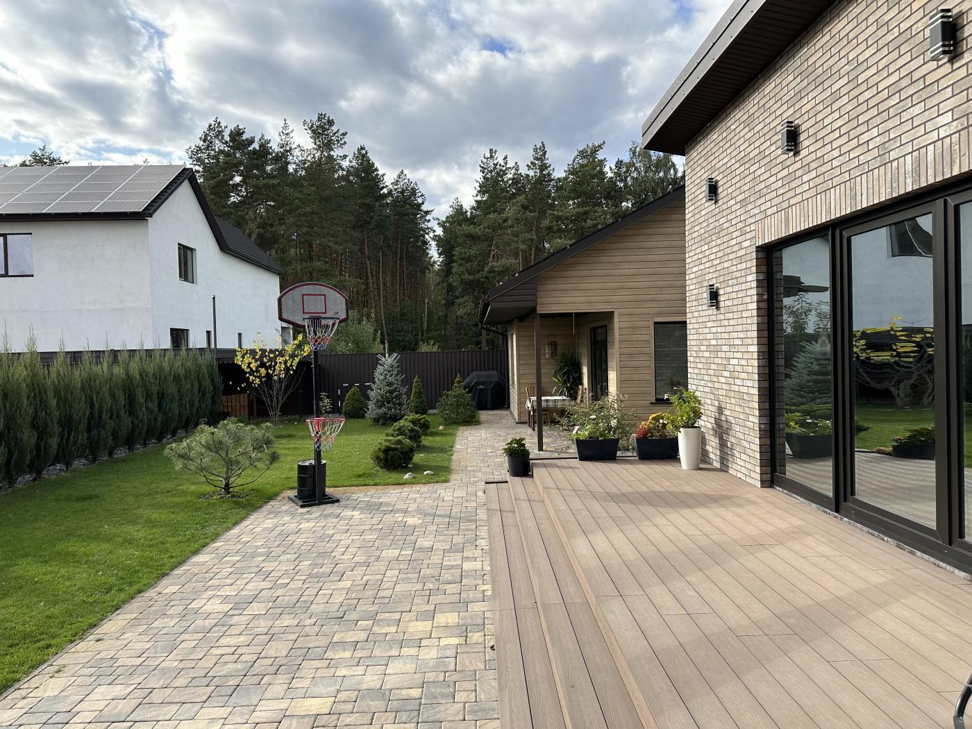 Навіс для трьох автомобілів(зарядка для електрокару), вольєр та гостьовий будинок на 70кв.м.